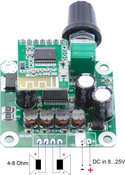 Stereo Verstärkermodul TPA3110 mit BluetoothSpannungsversorgung: 8-25VDCStromaufnahme: max. 2 A