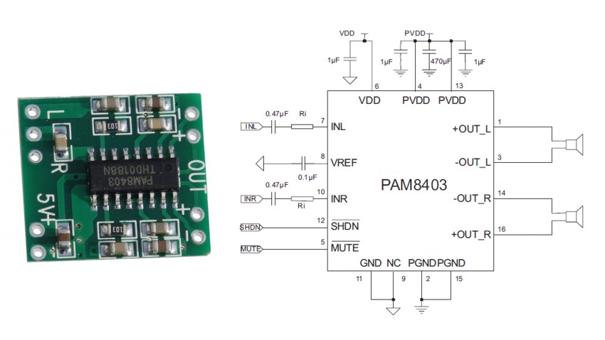 Betrieb an 2,5...5 V-Ideal zum Betrieb am USB Port. SMD bestückte Platine mit IC PAM8403.