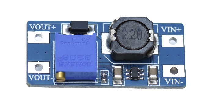 Die Eingangsspannung sollte >2,5V für 5V am Ausgang sein. Gedacht ist dieses Modul für den Betrieb an einer 3,7V Lithiumzelle.