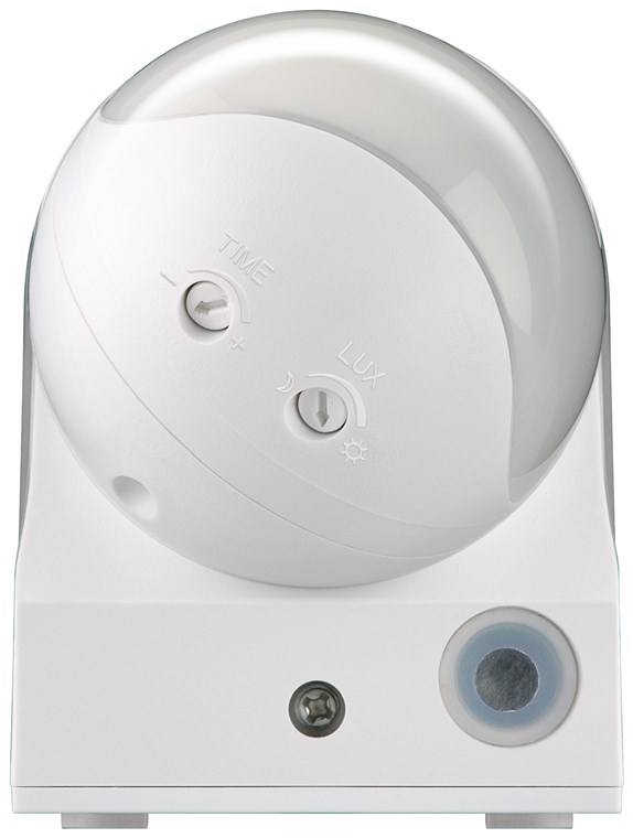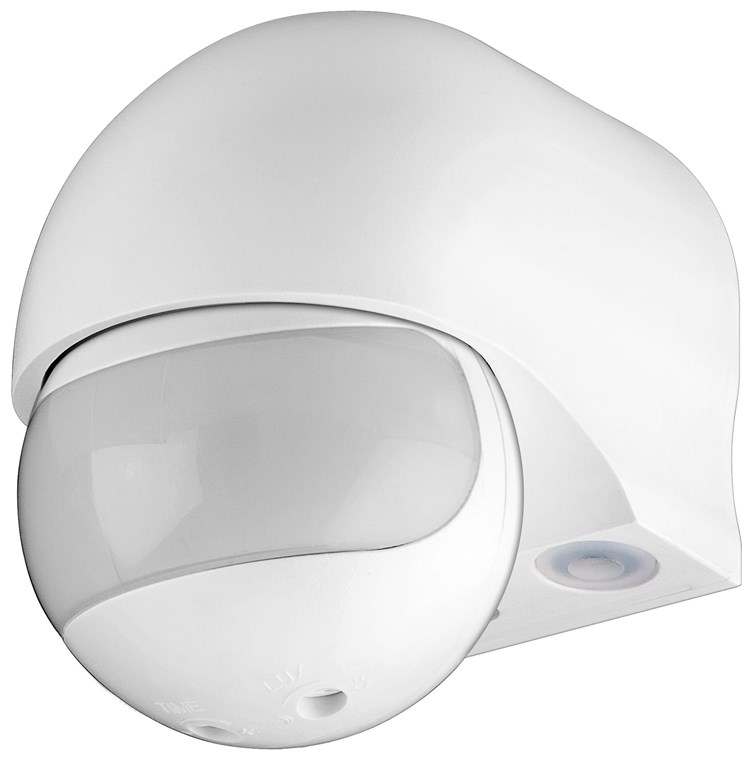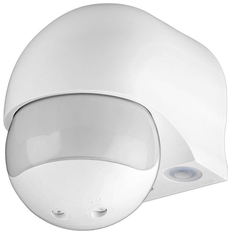 Infrarot Bewegungsmelder zur Aufputz-Wandmontage; 180 ° Erfassung, 12 m Reichweite, für Außen (IP44), LED-geeignet.