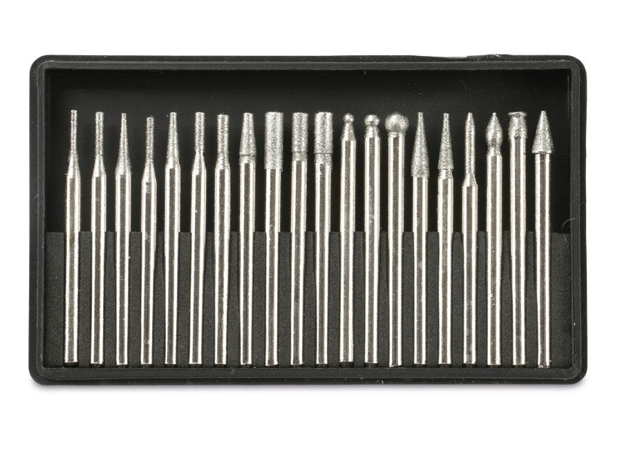 20 Diamant-Fräser mit unterschiedlichen Köpfen.