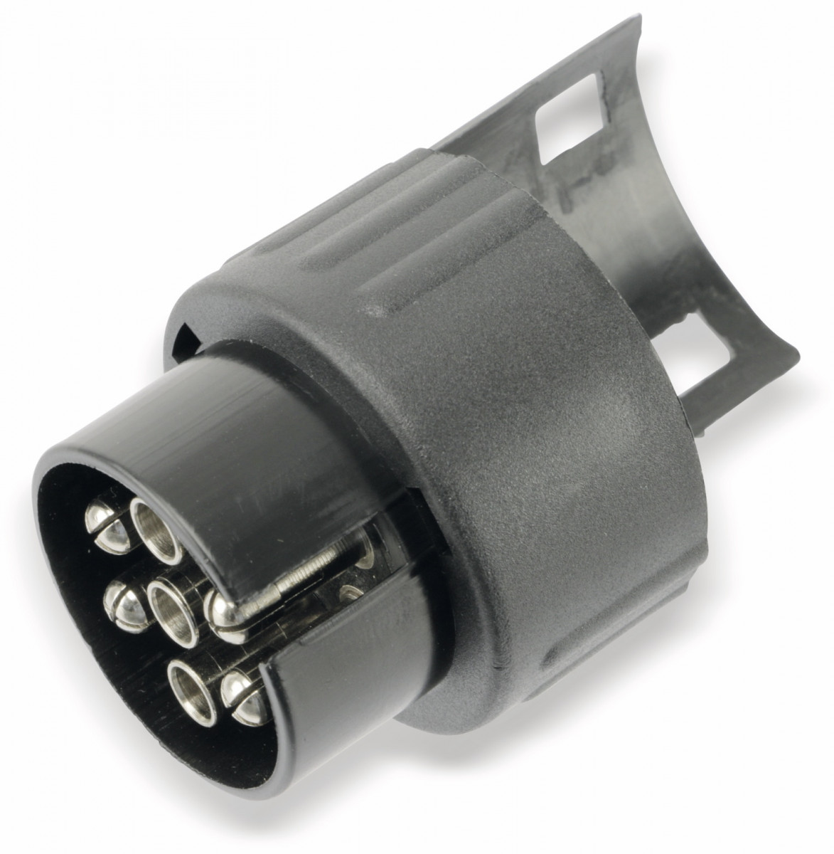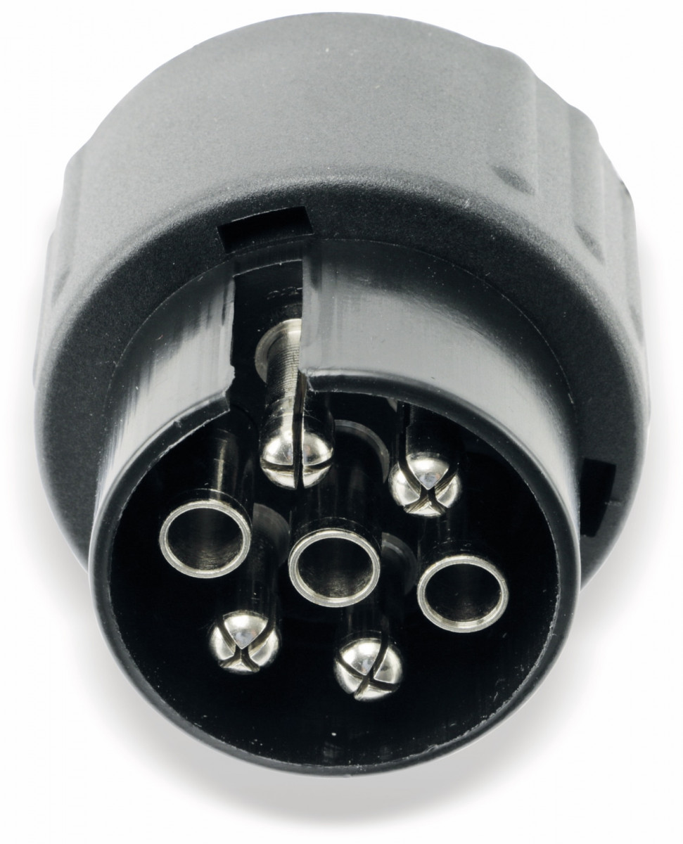 Dieses praktische Adapterstück aus schlagfestem ABS-Kunststoff ermöglicht den Anschluss eines Anhängers mit neuem, 13-poligem Stecker auf ein Fahrzeug mit einer älteren, 7-poligen Steckdose.
