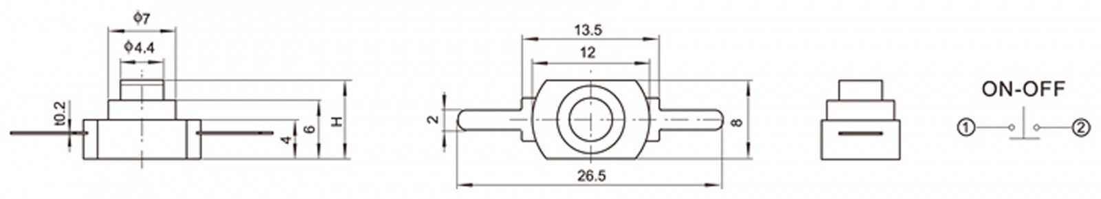 Produktinformationen "Miniatur-Druckschalter YT-1208-YD, 12x8 mm, Ein/Aus"