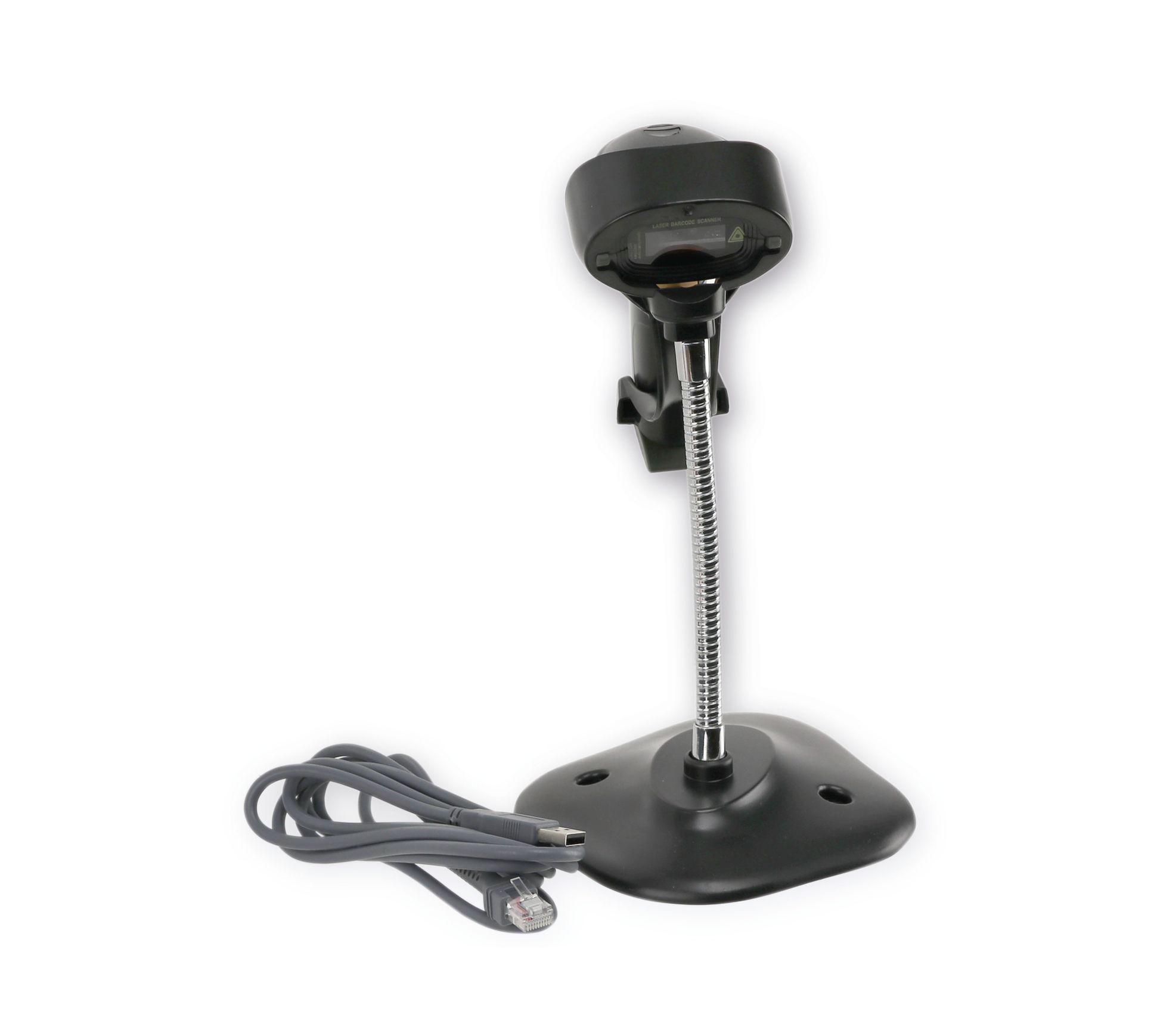 Barcode-Scanner zum Anschluss an den USB-Port eines PCs oder Laptops zeigt per Knopfdruck Strichcode-Daten an, als wären diese mit einer Tastatur eingegeben worden.
