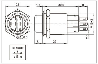 Vollmetalldrehschalter Edelstahl, 3 Schaltstellungen
