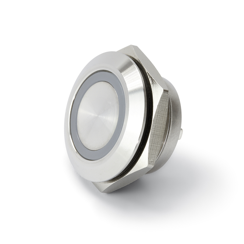 Produktinformationen "Vollmetalltaster kurz 16 mm mit Ringbeleuchtung blau"