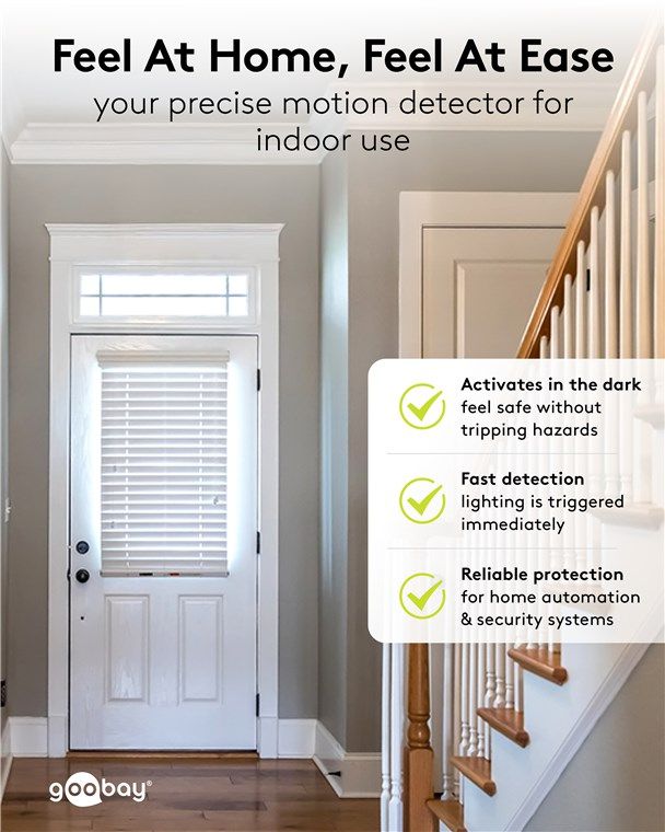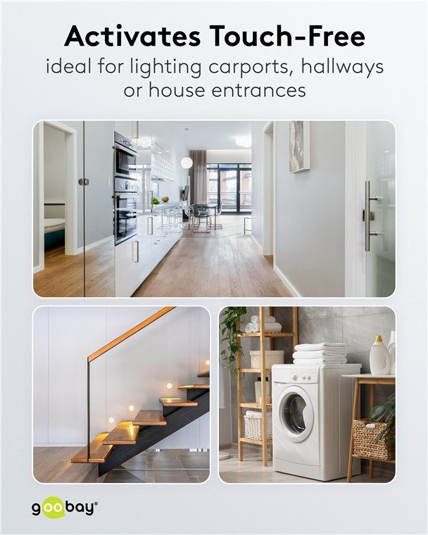 - Ersetzt den Lichtschalter und schaltet berührungslos: Besonders praktisch in Räumen, die mit vollen Händen betreten werden, z. B. Flure oder Hauswirtschaftsräume