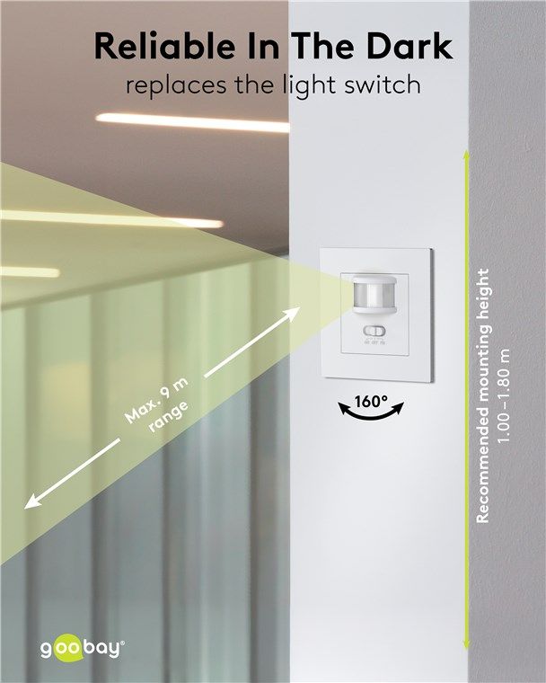 zur Unterputz-Wandmontage, 160°-Erfassung, 9 m Reichweite, für innen (IP20).
