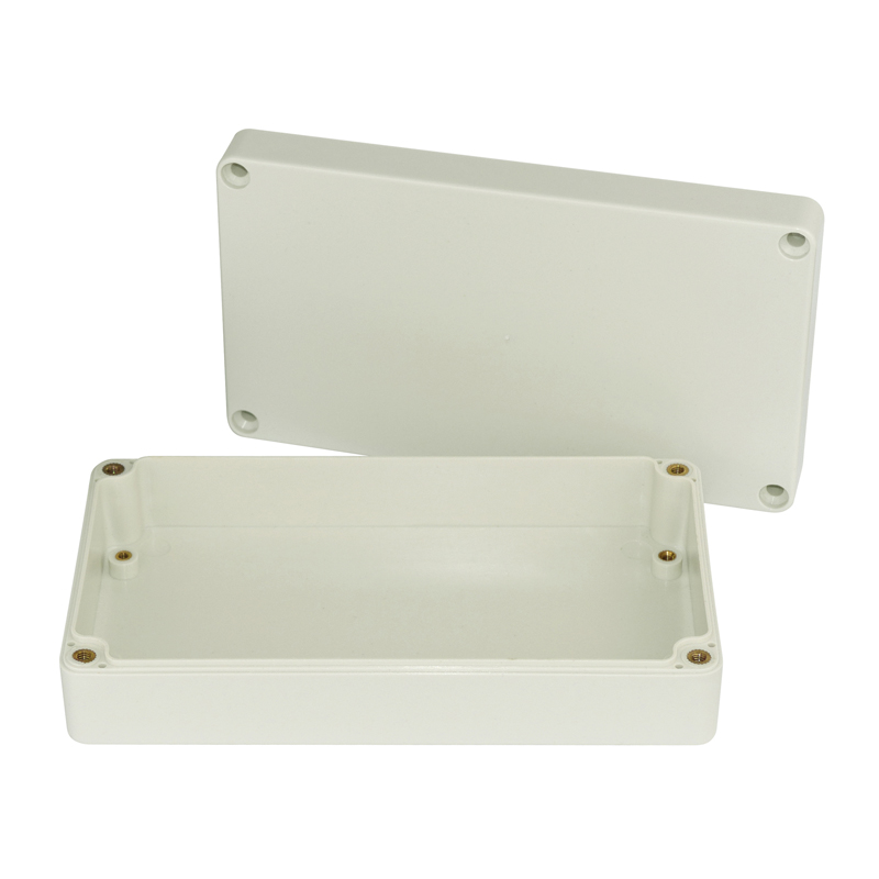 Hochwertiges, staubdichtes und strahlwassergeschütztes Gehäuse aus ABS, Schutzklasse IP 65. Inkl. Dichtungsgummi und Metallschrauben. Mit Befestigungsmöglichkeit für Einbauten.