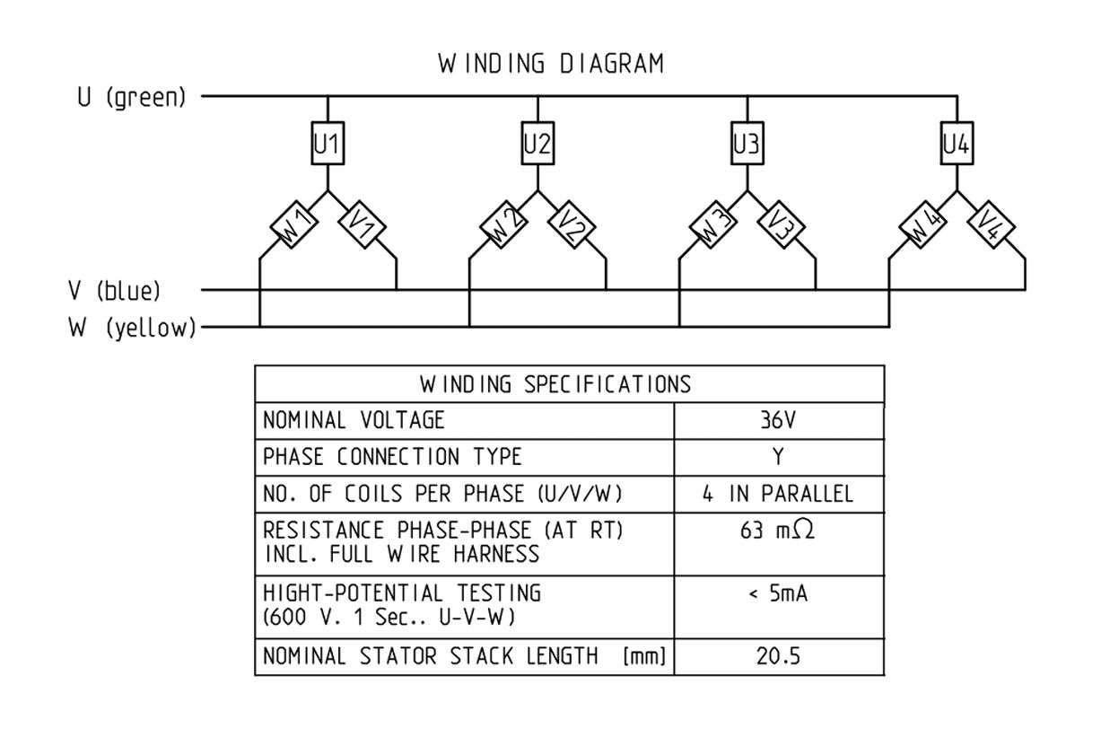 - Widerstand U-V/V-W/U-W: 65 mΩ