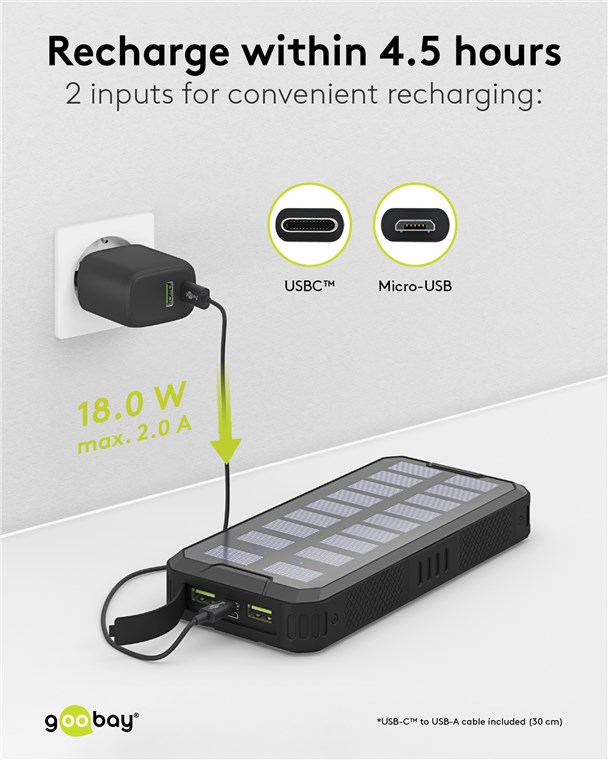 Produktinformationen "Outdoor Schnelllade-Powerbank mit Solar 20.000 mAh (USB-C™ PD, QC 3.0)"