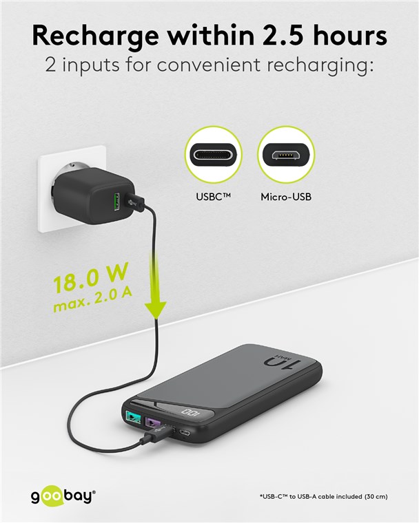 - USB-C™-Power-Delivery-Schnellladetechnik ermöglicht bis zu 4x schnelleres Aufladen der Powerbank und der angeschlossenen Geräte im Vergleich zu herkömmlichen Powerbanks.