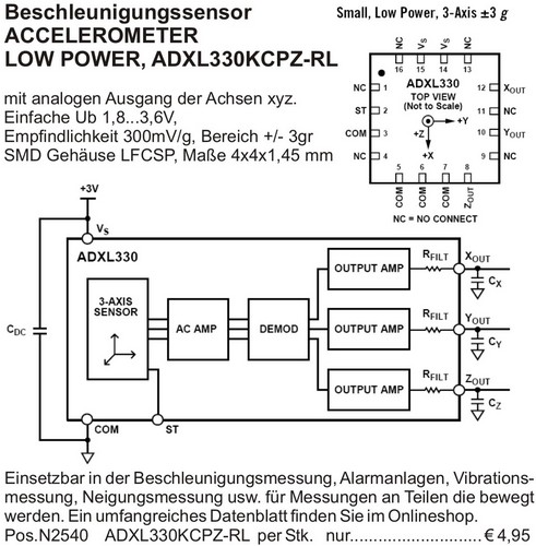 Downloads "ADXL330KCPZ-RL Beschleunigungssensor 3-Achsen"
