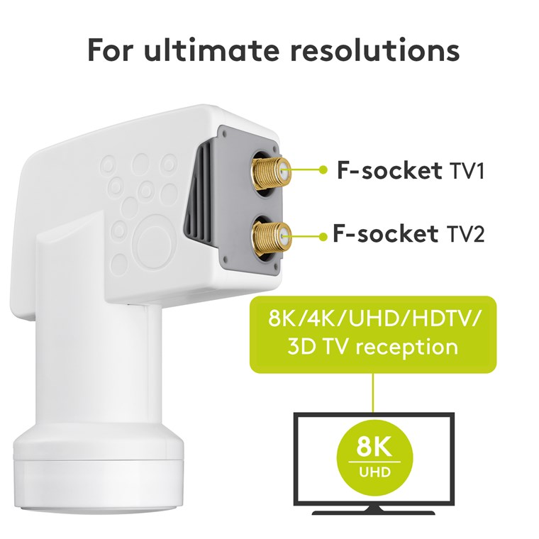 Universal Twin LNB, digitaler SAT-LNB (DVB-S2) für 2 Teilnehmer (8K/4K/UHD/HDTV/3D Empfang)
