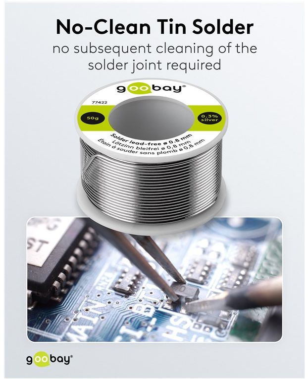 Alles im Flow: Mit dem schmalen Durchmesser ist das Zinn einfach zu dosieren und ideal für Präzisionsarbeiten geeignet, z. B. für Lötarbeiten an elektrischen Bauteilen und Geräten wie Leiterplatten, Platinen, SMDs, DIP, Kabel, Fernseher, Kopfhörer oder Mikrofone. Das eingearbeitete No-Clean-Flussmittel ist besonders komfortabel, da du es nach dem Löten nicht extra von der Lötstelle entfernen musst.