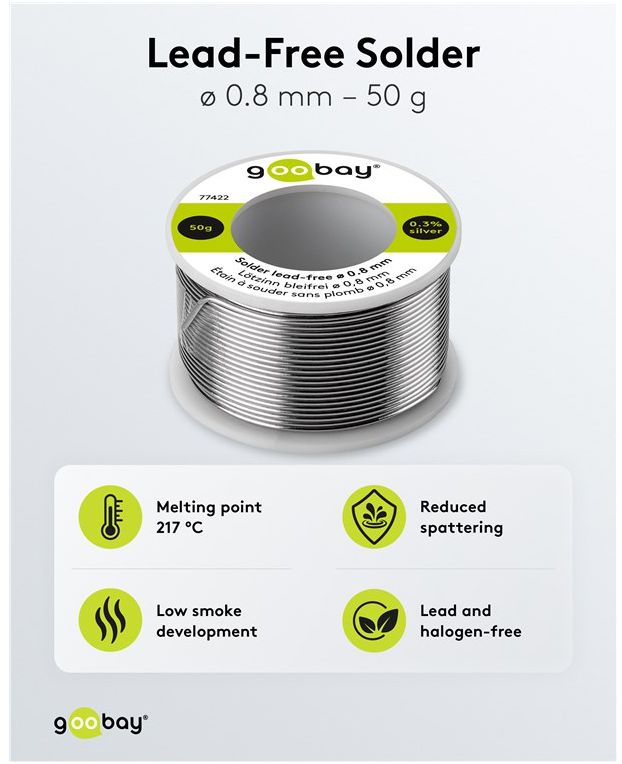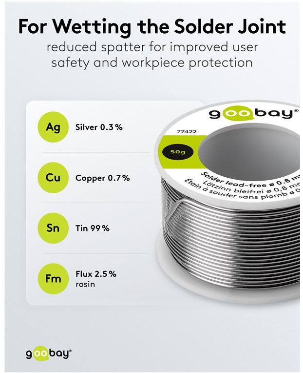- Flussmittelgefüllter Lötdraht mit einem Durchmesser von 0,8 mm, ideal z. B. für das Löten von Elektronik