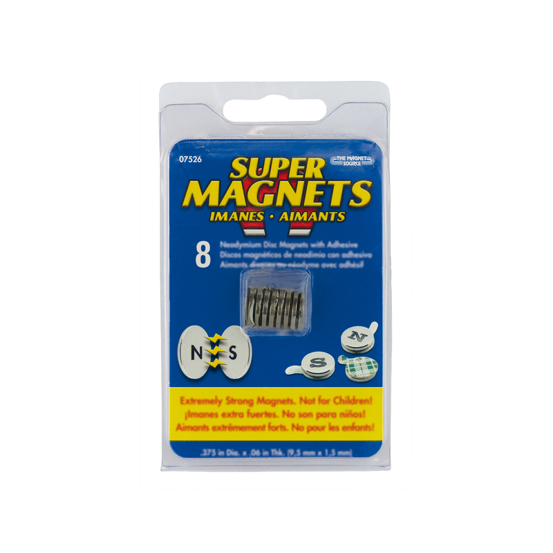 Neodymiummagnet-Set 8 Stück 12 x 1,5 mm mit Klebeseite