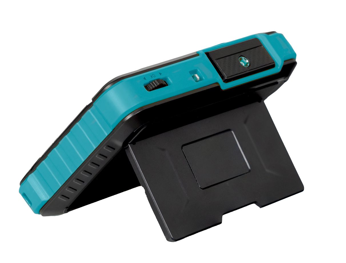 - Standfunktion: Integrierter, um 90° klappbarer Standfuß