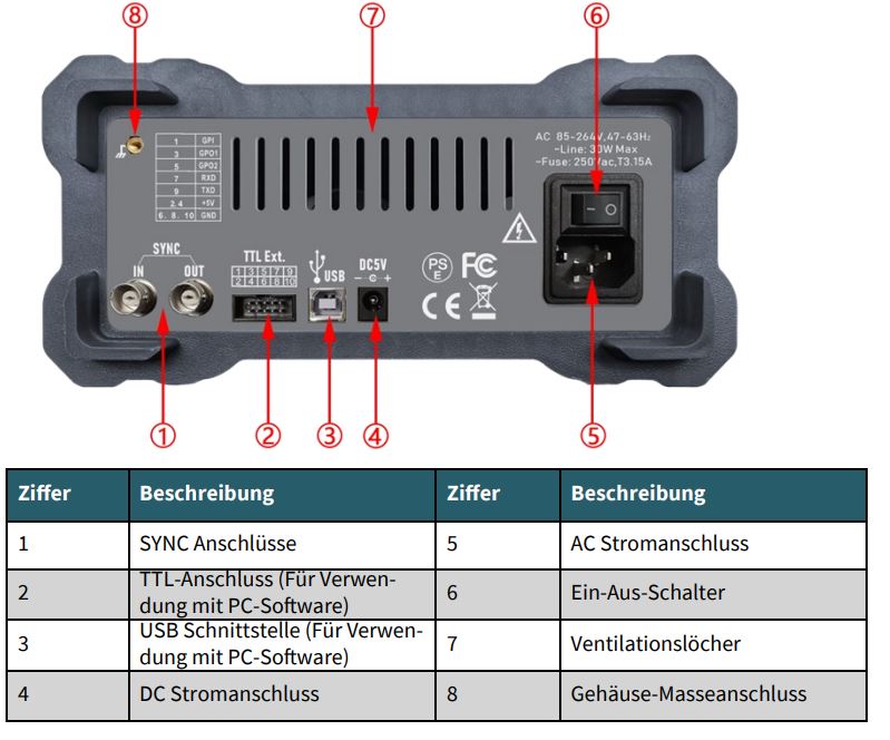 - Anschluss: BNC Signalklemmen