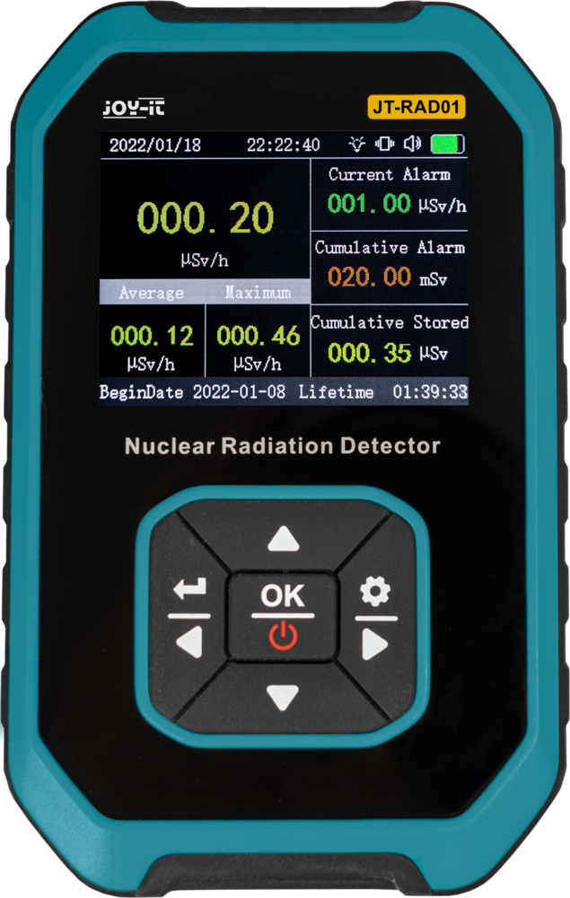 Das JT-RAD01 ist ein Strahlungsmessgerät zum Nachweis von γ-, β- und Röntgenstrahlung und zeichnet sich durch seine besonders einfache Handhabung, hohe Messstabilität und seinem handlichen und robusten Design aus.