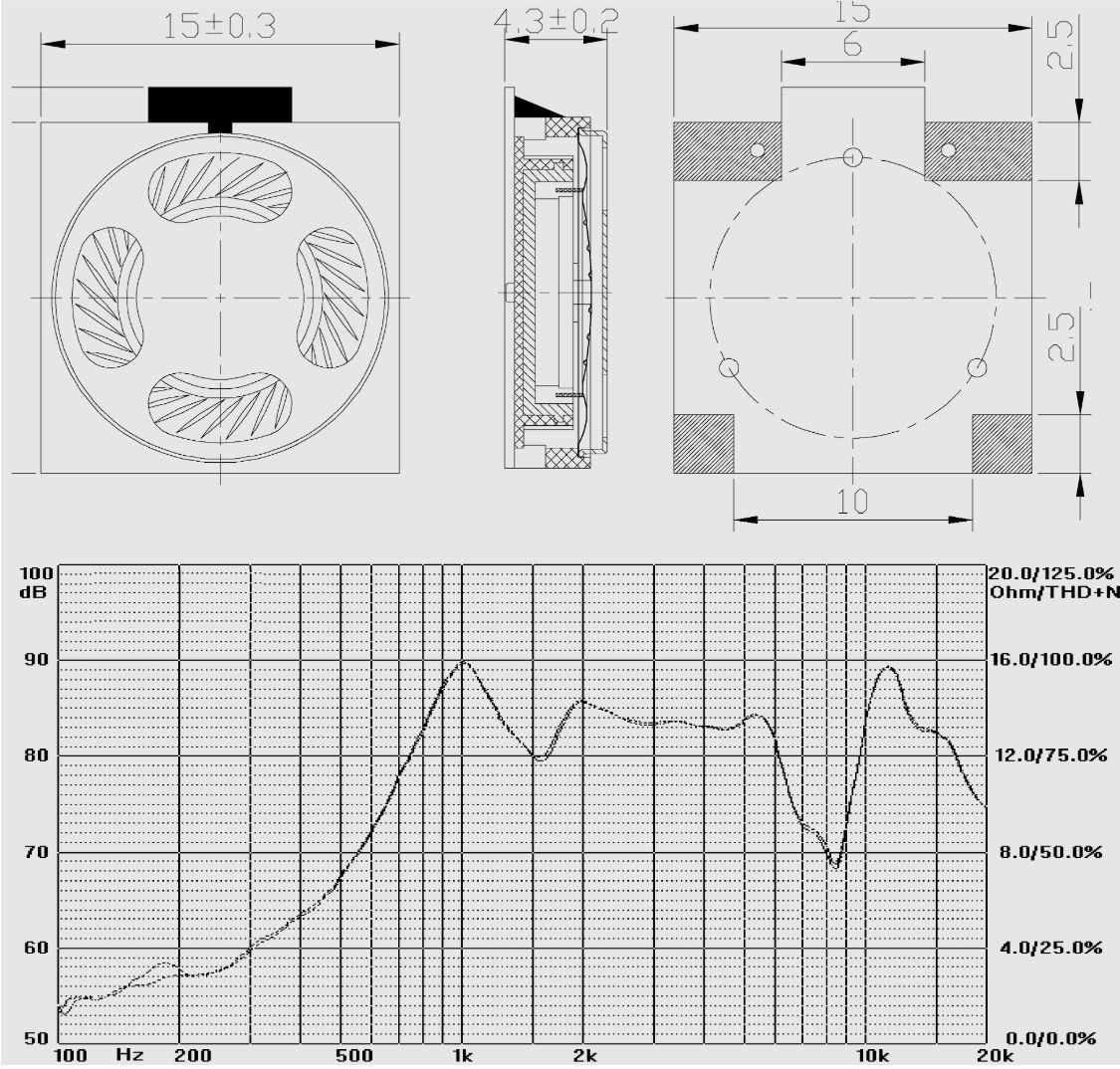 Miniaturlautsprecher 15x15 mm für SMD Montage, ideal als Ersatz für Geräte im Mobiltelefon-Bereich.