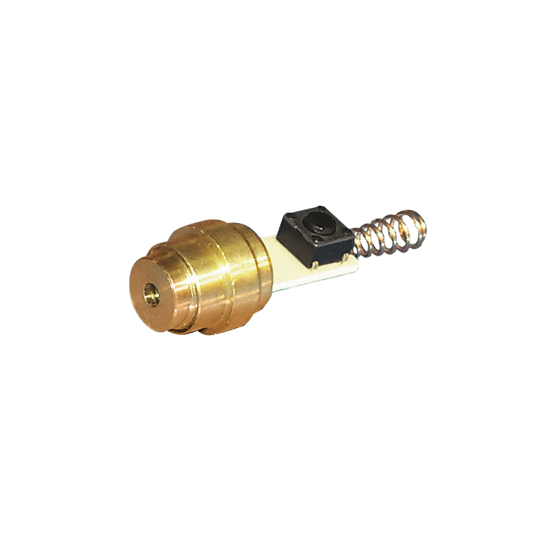 Leistungsstarkes Laser-Modul zum Einbau in Anzeigevorrichtungen, Lichtschranken, Messgeräten etc. Pluspol-Gehäuse/Minuspol-Kontaktfeder.