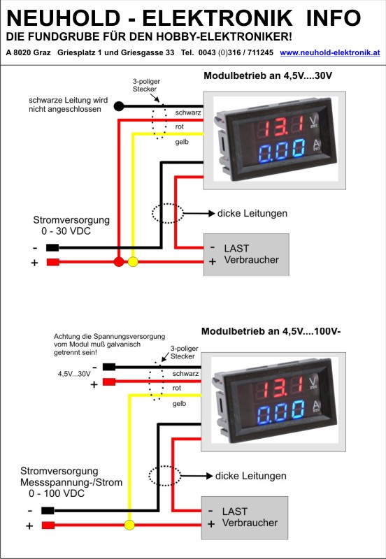Bei >30V Eingangsspannung muß das Modul mit einer galvanisch getrennten Spannung versorgt werden.
