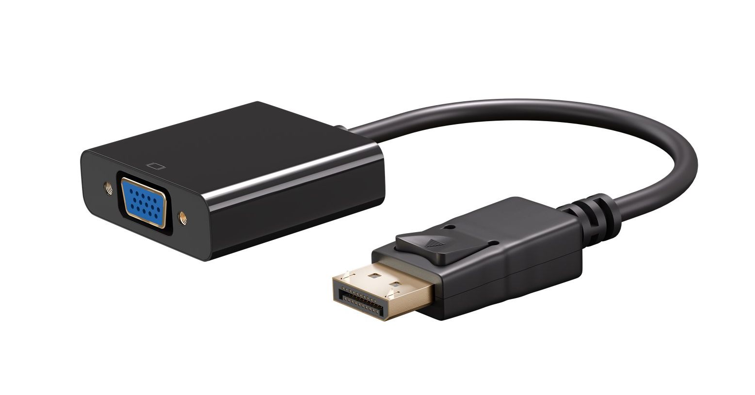 DisplayPort™-Stecker > VGA-Buchse (15-polig) Zum Verbinden von Geräten mit DisplayPort™-Anschluss, z. B. PC-Grafikkarten oder Notebooks, an ein Endgerät mit VGA-Anschluss wie Monitor, TV-Gerät, Beamer, Projektor etc. Signalübertragung: DisplayPort™-Stecker zu VGA-Buchse Vergoldete Kontakte zur verbesserten Signalübertragung Stecker mit Verriegelung zur sicheren MontageSignalübertragung: max. Auflösung Full HD (1920 x 1080p) 60 Hz
