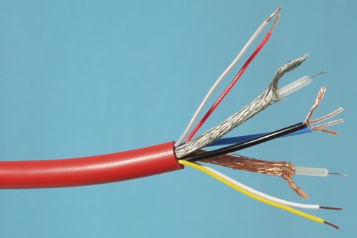 hochwertige Video-/Audio-Leitung, 2 x Koax 75 Ohm, 2 x Audio geschirmt und 4 x Steuerleitung. Außendurchmesser 8,2 mm.Abgabe meterweise.