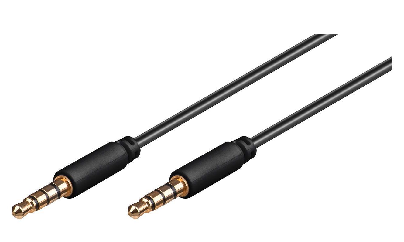 Klinke 3,5 mm Stecker (4-Pin, stereo) > Klinke 3,5 mm Stecker (4-Pin, stereo)Goobay hat immer das richtige Elektronik-Zubehör für Ihre Audioanwendungen z. B. für Hobby-Tonstudios, Heimkino-Abende mit der Familie oder Musiksessions unter Freunden. Unsere Produkte übertragen Audio-Signale in maximaler Qualität für ein kristallklares Sound-Erlebnis. Die robuste Konstruktion und hochwertige Materialien unserer Verbindungskabel, Adapter, Konverter und Audio-Stecker sorgen für ein klangvolles Entertainment. Einfach. Alles. Passend!Das Goobay-Audiokabel verbindet Multimedia-Geräte mit einer 3,5-mm-Klinkenbuchse wie Smartphones und Tablets mit einem Ausgabegerät z. B. PC, Verstärker oder Lautsprecher.4-poliger Stecker kann Audiosignale übertragen und mit einem Mikrofon verbunden werden.Vergoldete Klinkenstecker sorgen für beständigen Sound und eine perfekte Klangqualität ohne Störgeräusche.Das schmale Design des Klinkensteckers ermöglicht ein leichtes Einstecken in die Buchse, auch wenn sich das Gerät in einer Schutzhülle befindet.Flexibles AUX-Kabel mit kleinem BiegeradiusLänge: 1 m