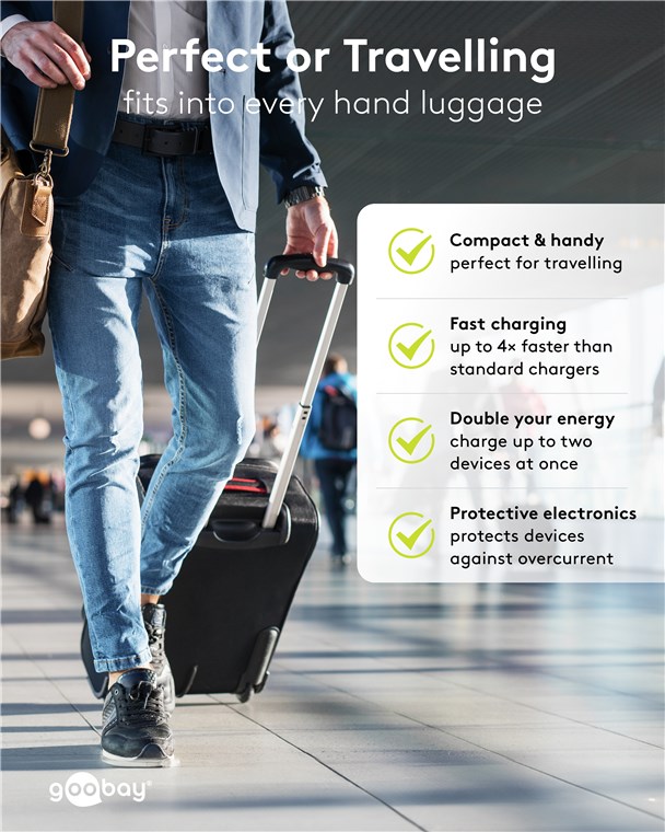 - Mit dem Schnelllademodus versorgt das Goobay-Netzteil per USB-C™ Power Delivery Laptops wie das Apple MacBook und lädt gleichzeitig über USB-A Smartphones, Kopfhörer etc.
