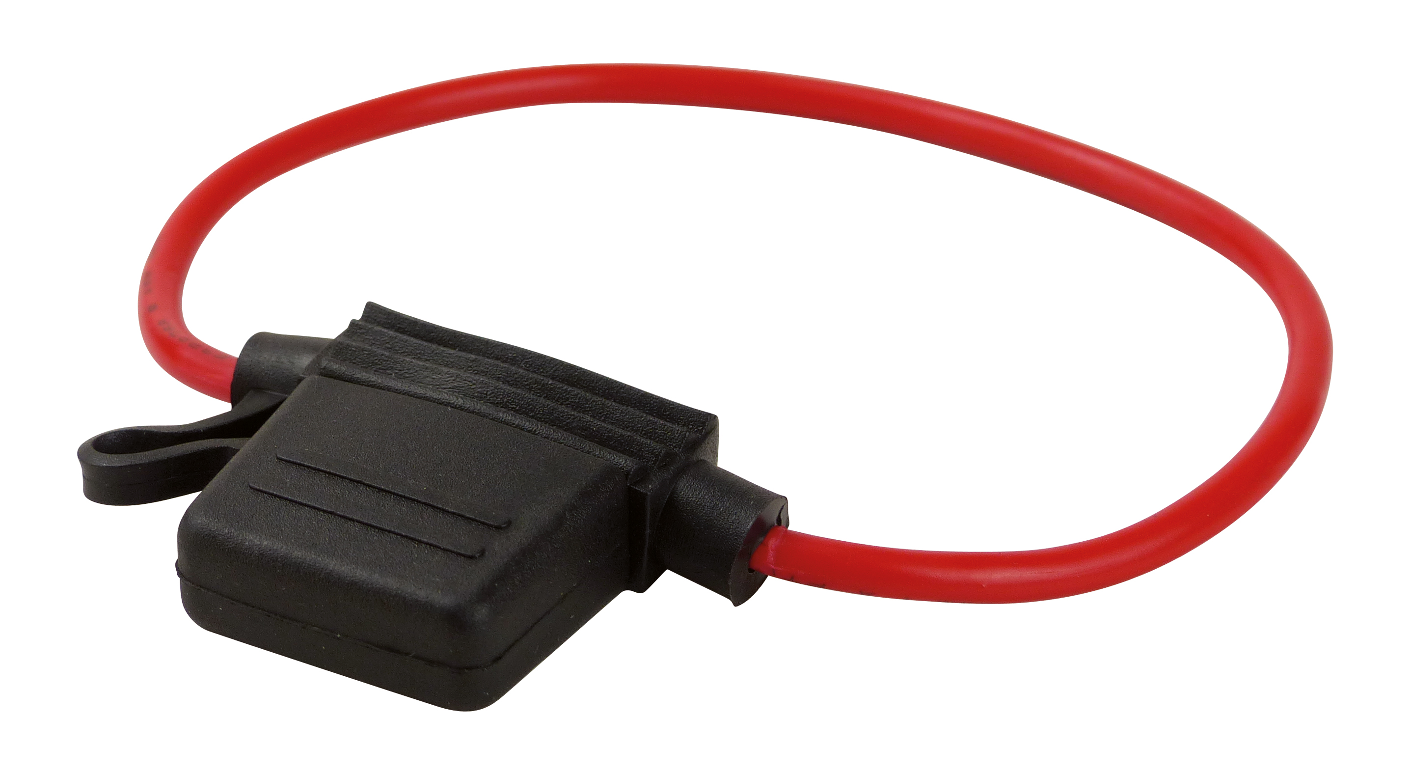 KFZ-Flachsicherungshalter mit flexibler Schutzkappe. Eignet sich um elektronische Komponenten gegen Überspannung abzusichern bis 40 A.