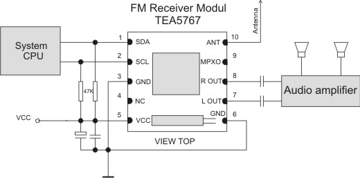 Das Stereo-FM-Empfänger-Modul ist mit dem TEA5767 Single-Chip von Philips bestückt.
