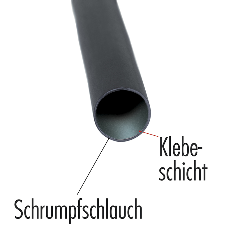 Klebe-Schrumpfschlauchset mit Schrumpfrate 3:1 und einem schmelzenden Innenkleber.