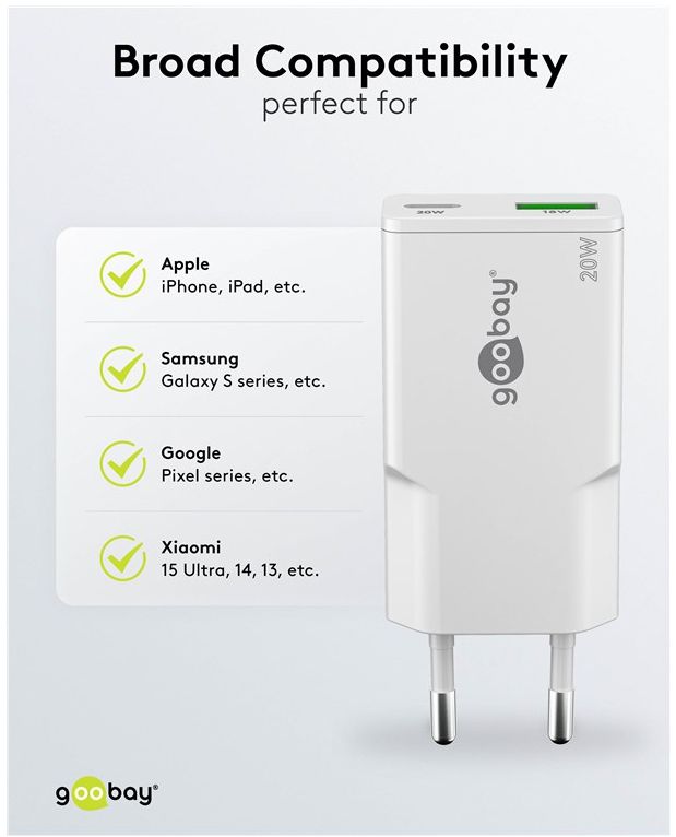 - Mit 20 W Leistung ist der USB-Adapter speziell auf kleine Geräte wie Smartphones, Bluetooth-Kopfhörer, Tablets oder Powerbanks zugeschnitten