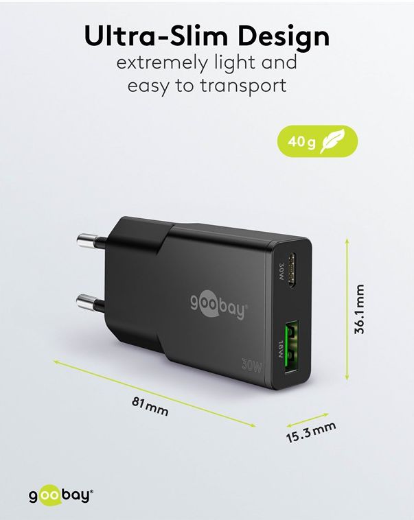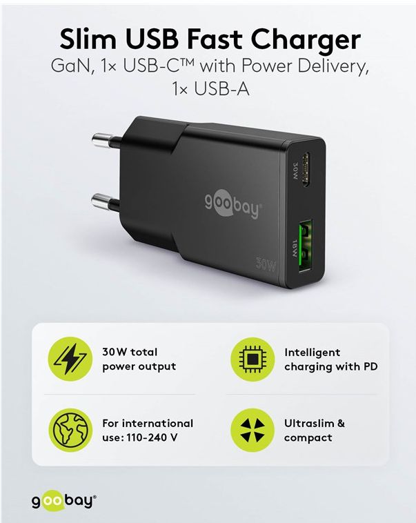 - Mit 30 W Leistung ist der USB-Adapter speziell auf kleine Geräte wie Smartphones, Bluetooth-Kopfhörer, Tablets oder Powerbanks zugeschnitten