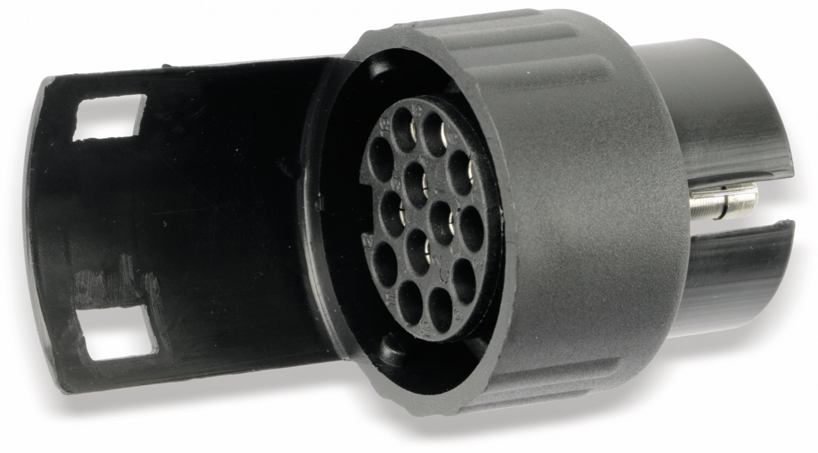 Dieses praktische Adapterstück aus schlagfestem ABS-Kunststoff ermöglicht den Anschluss eines Anhängers mit neuem, 13-poligem Stecker auf ein Fahrzeug mit einer älteren, 7-poligen Steckdose.