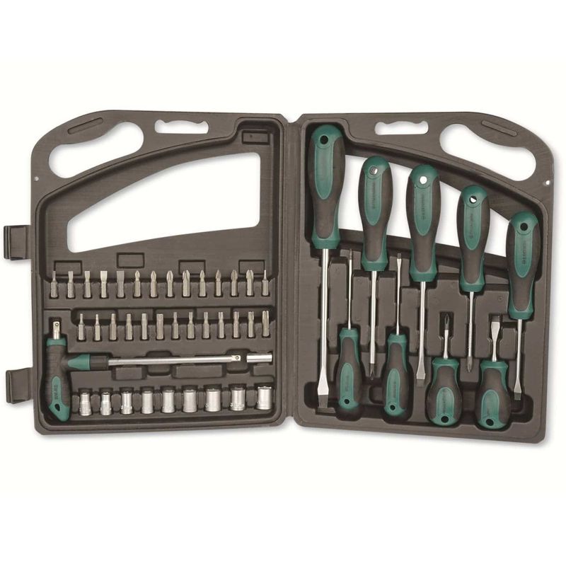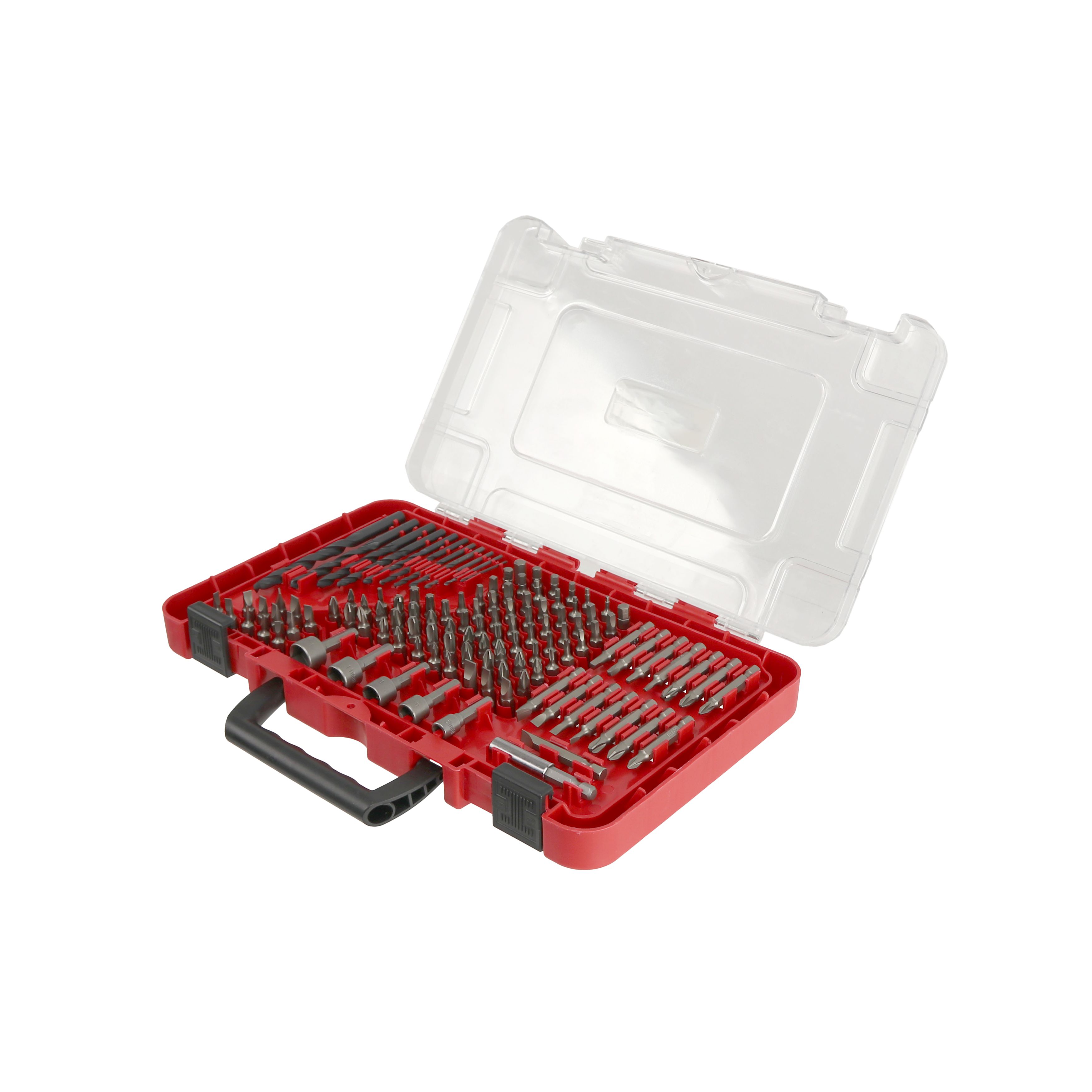 inkl. 28 Bits: 6x Schlitz: 1 mm, 1.5 mm, 2 mm, 2.5 mm, 3 mm, 3.5 mm 4x Kreuzschlitz (Phillips): PH000, PH00, PH0, PH1 2x Pozidriv: PZ0, PZ1 9x Torx: T4, T5, T6, T7, T8, T9, T10, T15, T20 7x Außensechskant: H0.7, H0.9, H1.3, H2, H2.5, H3, H4 1x 100 mm Präzisionsschrauben-Bit inkl. 7x Sechskant-Nuss: 2,5 mm, 3 mm, 3.5 mm, 4 mm, 4.5 mm, 5 mm, 5.5 mm