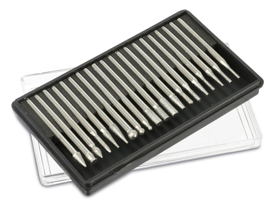 20 Diamant-Fräser mit unterschiedlichen Köpfen.