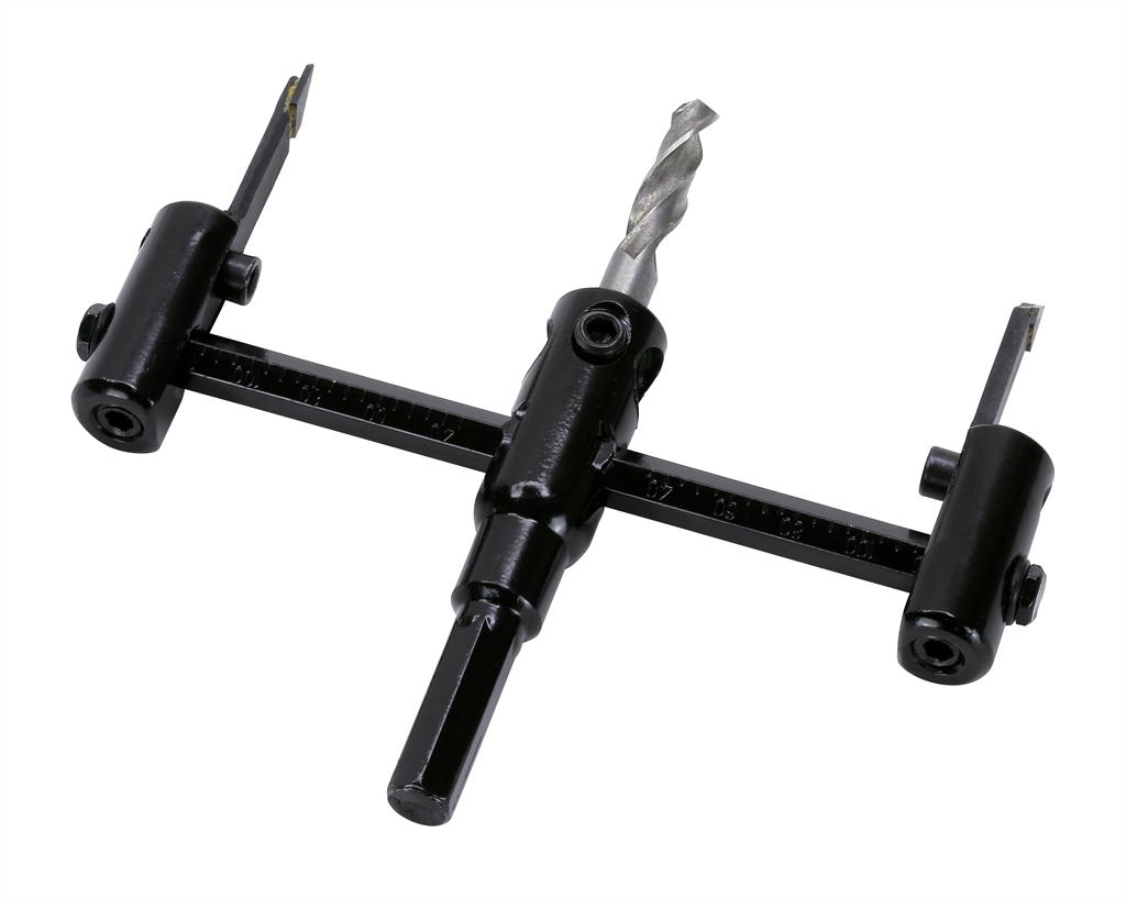 Mit diesem Kreisschneider lassen sich Kreise einfach und ohne weiteres Spezialwerkzeug mit einem Durchmesser von ca. 30-120 mm und bis zu einer Schnitt-Tiefe von ca. 30 mm realisieren. Egal ob z.B. dünnes Holz, Kunststoff, dünnes Aluminium oder Gipskarton, einfach den Kreisschneider auf die entsprechende Größe einstellen, in Akkuschrauber oder Bohrmaschine einspannen und los gehts!Inkl. 1 Zentrier-Spiralbohrer 8mm, 1 Aufsatzpin (wenn kein Loch in den Kreisausschnitt gebohrt werden soll), Inbusschlüssel zur Werkzeugeinstellung, Werkzeughalter, 2 Kohlenstoffstahl-Schneiden.