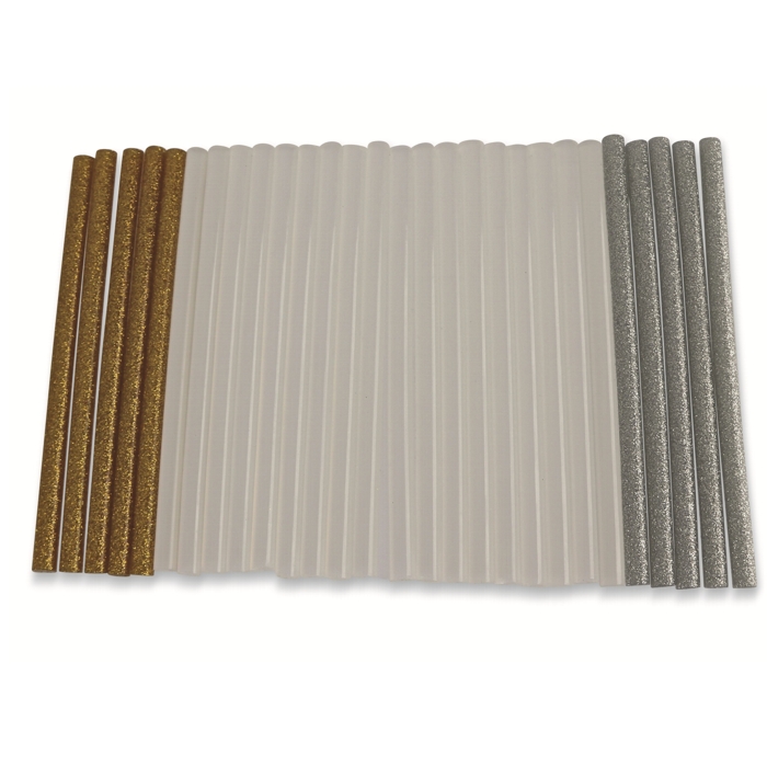 Lieferumfang: 18x Stick transparent, 5x Stick Gold Glitzer, 5x Stick Silber Glitzer