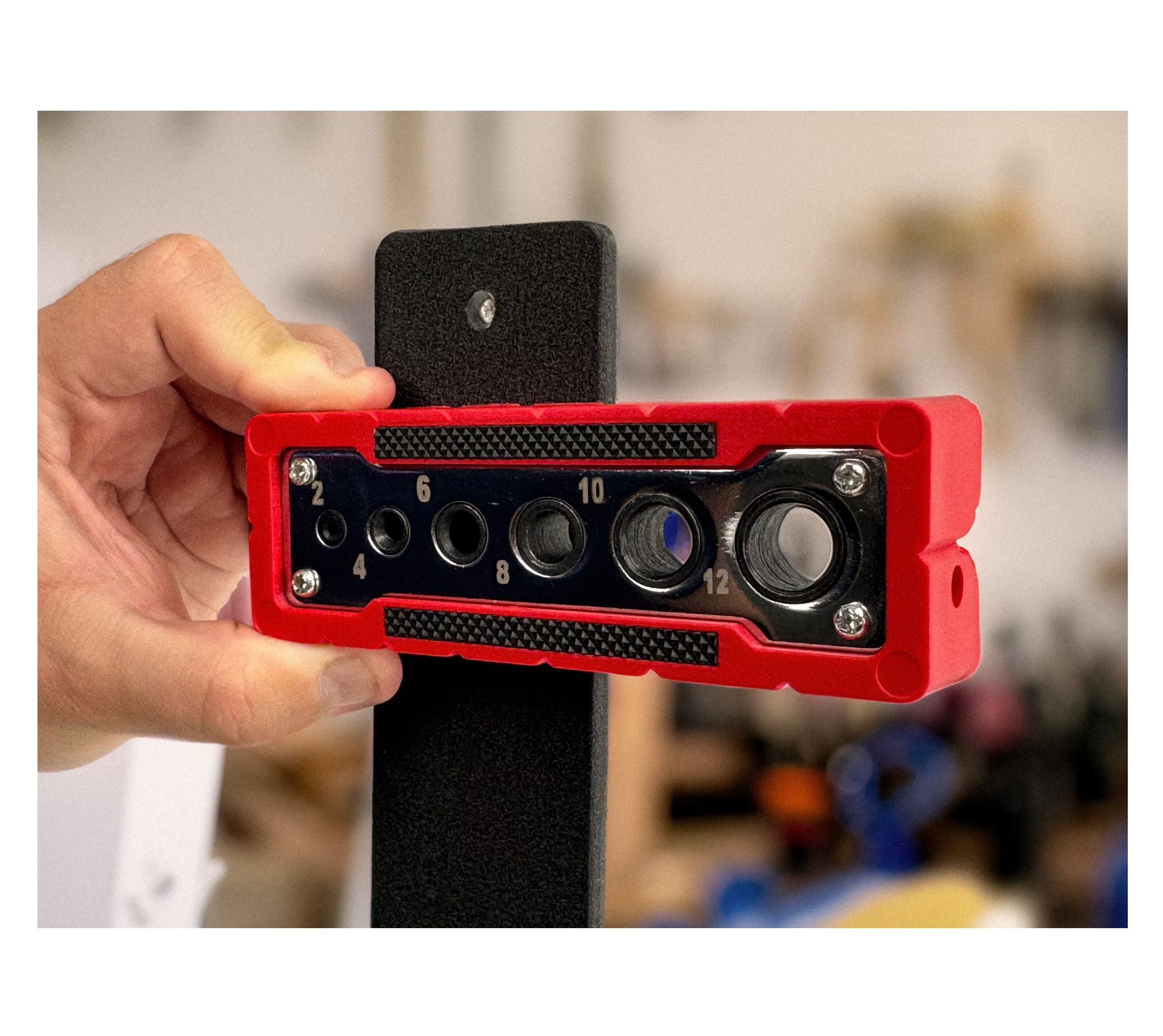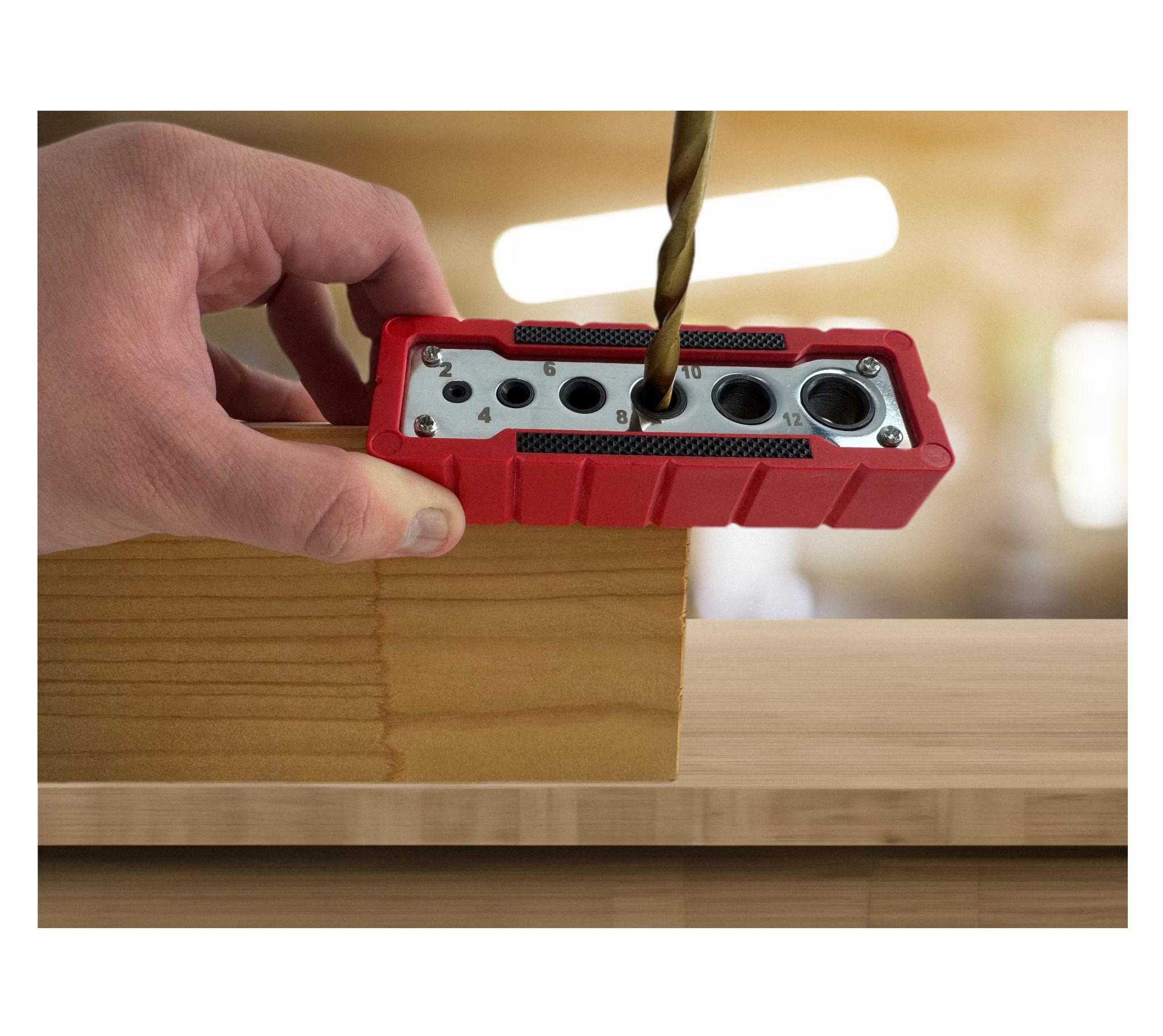 Die Bohrschablone BS-212 ermöglicht präzises Bohren dank ihrer stabilen Aluminium-Führungsbuchsen. Mit sechs verschiedenen Durchmessern von 2 bis 12 mm bietet sie Flexibilität für zahlreiche Anwendungen. Das robuste Kunststoffgehäuse sorgt für Langlebigkeit und einfache Handhabung. Ideal für Heimwerker und Profis gleichermaßen, um exakte Bohrlöcher zu gewährleisten. Ein praktisches Werkzeug für jedes Projekt, bei dem Präzision gefragt ist.