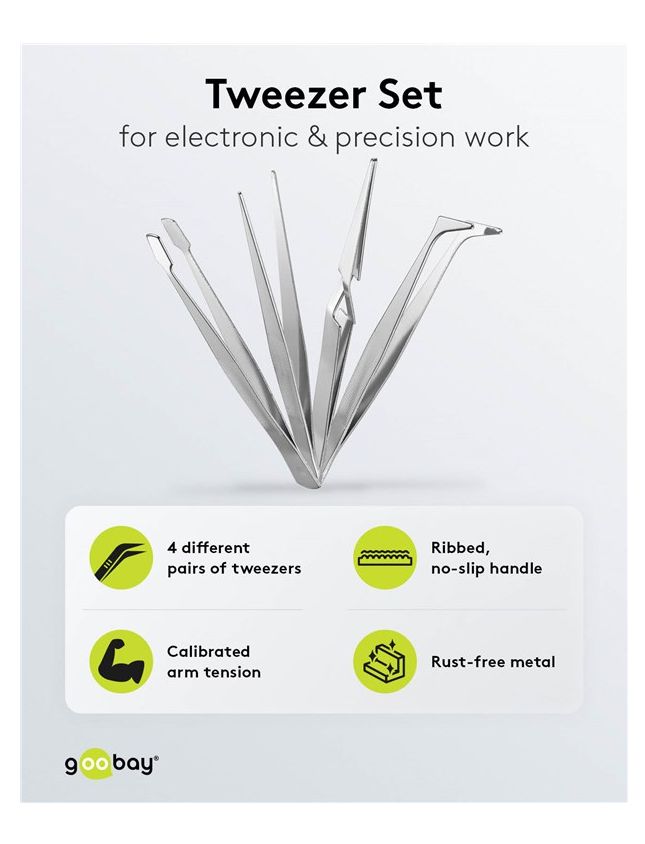 - Werkzeug-Set aus 4 unterschiedlich geformten, handlichen Pinzetten für Präzisionsarbeiten im Modellbau und Schmuckhandwerk, in der Elektronik und Philatelie