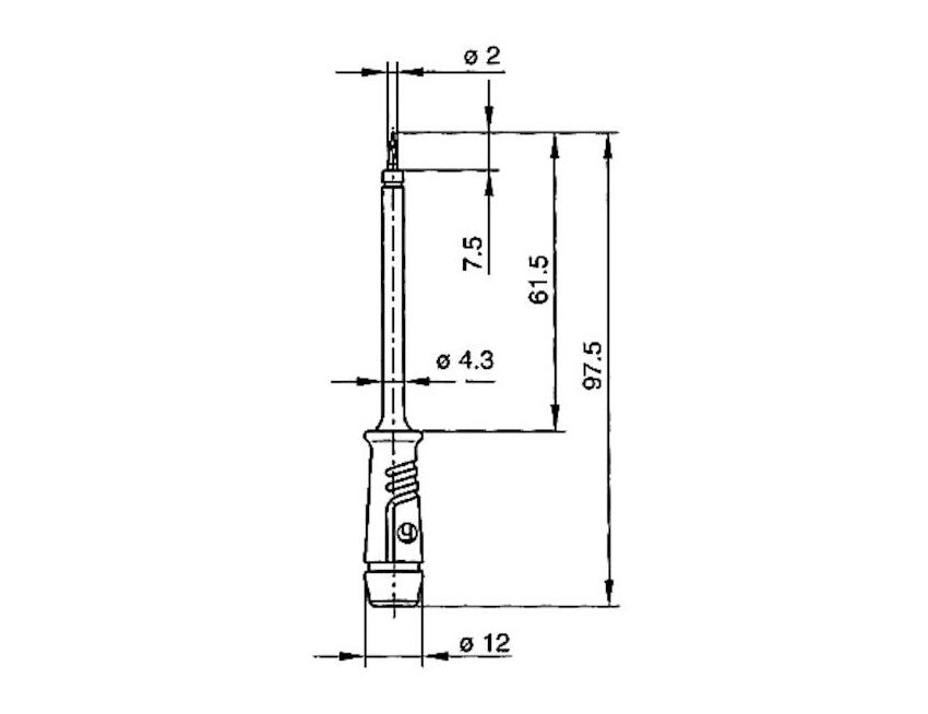 Prüfspitze mit trittfester Isolierhülse und schlanker vernickelter Edelstahlspitze. Spitze zum Durchstoßen von Isolier- und Oxidschichten. 4mm Buchsenanschluss.